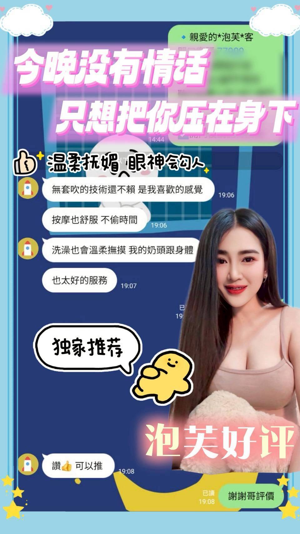 服務:無套吹/共浴/按摩/親親